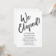 Invitez vos invités à votre célébration de mariage avec l'aide de ces simples cartes d'invitation noir sur blanc. Dans le design que j'ai utilisé, une police manuscrite moderne et décontractée crée une superposition de typographie graphique avec la mention "Nous nous sommes mariés en secret !". Remplissez les espaces vides du modèle avec vos informations pour personnaliser le design. Toutes les couches ont été laissées déverrouillées afin que vous puissiez cliquer pour personnaliser davantage et repositionner le texte ou même changer les tailles ou les polices. La couleur de fond a été laissée blanche, mais celle-ci est également modifiable ; changez-la pour l'une de vos couleurs de mariage si vous préférez. Je serais également ravi d'ajouter le type d'image graphique que vous préférez au verso si vous avez des demandes spéciales. N'hésitez pas à nous contacter pour obtenir de l'aide sur