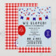 Cette conception polyvalente est parfaite pour votre célébration de fuite en été ! Que vous organisiez votre réception de mariage dans votre jardin ou dans le parc local, cette conception est l'expression parfaite d'un pique-nique, avec une nappe à carreaux rouge et blanc, des ballons, une bannière triangulaire et des guirlandes lumineuses pour donner le ton à une célébration décontractée et super amusante pour votre nouvelle vie de M. et Mme ! Tout le texte peut être modifié, bien sûr. #Fuite #Pique-nique #Barbecue