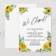 Invitez vos invités à votre célébration de mariage avec l'aide de ces jolies cartes florales. Dans le design, j'ai utilisé une police d'écriture élégante pour créer une superposition de typographie graphique simple qui dit "Nous nous sommes mariés en secret !". Les coins sont accentués de graphiques représentant des bouquets aquarelles de tournesols et de brindilles d'eucalyptus. Remplissez les espaces vides du modèle avec vos détails pour personnaliser le design. Toutes les couches ont été laissées déverrouillées pour que vous puissiez cliquer pour personnaliser davantage et repositionner le texte ou même changer les tailles ou les polices. N'hésitez pas à nous contacter pour obtenir de l'aide pour la personnalisation.