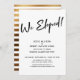 Dans ce design simple, j'ai utilisé une police de calligraphie moderne et élégante pour créer une superposition de typographie graphique indiquant "Nous nous sommes enfuis !". Remplissez les espaces du modèle avec les détails de votre événement de célébration pour personnaliser le design. Toutes les couches ont été ajoutées séparément et laissées déverrouillées afin que vous puissiez cliquer pour personnaliser davantage et repositionner le texte ou même changer les tailles ou les polices. Le dos de la carte est recouvert d'un motif rayé faux or sur fond blanc ; le blanc peut être changé en n'importe quelle couleur de votre choix. Vous pouvez également remplacer les rayures par un autre motif ou une image de votre choix, ou même les supprimer complètement pour un look épuré et minimaliste. //