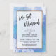 Sur un fond artistique désordonné avec des éclaboussures de peinture dans des nuances de bleu, de violet et de turquoise, j'ai placé un rectangle opaque bordé de doré faux-métallique pour mettre en valeur le texte. La partie supérieure comporte une couche de typographie simple qui indique "Nous nous sommes mariés" dans une écriture manuscrite moderne et décontractée. Utilisez les champs de modèle pour ajouter vos propres détails. Toutes les couches ont été ajoutées séparément et laissées déverrouillées pour vous donner un contrôle sur le design. // 105 //