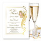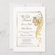 Une élégante invitation de réception de mariage en or avec un cadre orné doré et un embellissement doré avec des fleurs roses blush faisant partie du cadre. C'est l'invitation parfaite pour ceux qui ont choisi de se marier en privé ou de s'enfuir en tant qu'alternative plus simple à un mariage traditionnel, mais qui souhaitent néanmoins partager leur joie avec leurs amis et leur famille lors d'une célébration post-mariage. Le texte est facilement personnalisable pour que vous puissiez ajouter vos propres détails selon vos besoins.