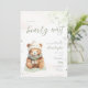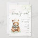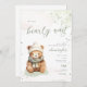 Ce design présente un joli petit ours en peluche sur un arrière - plan beige subtil texturé et moucheté. palette de couleurs : vert sauge, beige et ivoire. Cette invitation baby shower thématique "We can bearly wait" est parfaite pour l'hiver.
