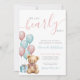 "We can BEARly wait" donne le ton de cette adorable invitation baby shower, parfaite pour célébrer l’être de la mère, que ce soit pour être surprise par le genre à la naissance (c’est-à-dire neutre du genre), ou même pour les jumeaux garçons et filles ou même pour les triplés ! Doté de ballons d'aquarelle rose et bleu, d'un mignon ours en peluche bronzé avec un arc rose et des accents bleus, et d'une boîte cadeau turquoise, ce design est charmante polyvalent. Les polices sont un mélange de calligraphie de script élégant et de serif classique, créant un look élégant et équilibré. Les couleurs de police actuelles sont roses et grises, mais vous pouvez les customiser, avec l'arrière - plan, pour correspondre à votre thème. Cette invitation fonctionne magnifiquement pour une douche sans sexe ou pour jumeaux garçon et fille, ce qui en fait un choix délicieux pour toute célébration baby shower. Les éléments aquarelle et l'ours mignon ajoutent une touche d'élégance ludique, parfaite pour honorer la mère d'être sur sa journée spéciale. Adorable Ours Teddy Nous Pouvons Attendre Rapidement Invitation Baby shower Rose Et Bleu Balloons Genre Neutre. Disponible sous forme d'invitation imprimée ou d'invitation numérique téléchargeable que vous pouvez envoyer par e-mail ou avoir imprimé localement !