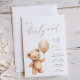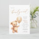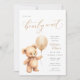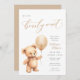 Célébrez l'arrivée prochaine d'un petit garçon avec cette invitation baby shower de charme, avec un ours en peluche doux à l'aquarelle tenant un ballon. Ce design mignon et neutre est parfait pour n'importe quel thème baby shower. Avec un script délicat et des détails élégants, il donne un ton chaleureux et accueillant à votre célébration. Personnalisez avec tous les détails de l'événement, y compris le nom, la date, l'heure, l'emplacement et les informations de registre.