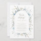 Commémorez votre journée spéciale avec cette invitation à la réception d'elopement! Dispose d'un délicat arrangement botanique floral bleu poussiéreux, encadrant une arche contenant tous les détails de votre événement en fontes or doux, délicat, élégant et capricieux. Contacter le concepteur pour les produits correspondants. Copyright Susan Mingay Koehrn pour Susan Mingay Designs, tous droits réservés.
