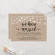 Belles lumières de chaîne de ferme rustique moderne, police de script noir sur fond kraft marron, annonce de mariage en fuite, carte d'invitation (Nous nous sommes mariés). C'est parfait pour votre réception de mariage et la fête de célébration après le mariage. Ajoutez vos détails dans la police / lettrage correspondant.