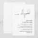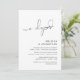 Ceci est la carte d'invitation pour une fête de mariage en fuite, avec un design de script minimaliste / minimalisme (nous sommes partis en amoureux)