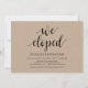 Nous sommes partis en cachette, Cartes d'invitation pour la réception de mariage après une fugue. Cette carte d'invitation rustique kraft sur le thème de la fugue est parfaite pour votre réception de mariage et la fête de célébration après le mariage. Ajoutez vos détails dans une police / lettrage noir assorti.