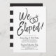 Après le grand jour et l'échange des anneaux, invitez vos invités les plus honorés à une célébration. Cette invitation présente les mots "Nous nous sommes mariés en secret" en lettres de fantaisie. Sur le côté, se trouvent une paire d'alliances. Sous ce graphique unique se trouve un espace pour vos propres mots et informations pour votre événement post-nuptial.