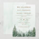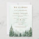 Cette invitation de mariage en elopement rustique élégant avec des arbres et une forêt de pins aquarelle peut être personnalisée avec vos informations en typographie moderne. Conçue par Thisisnotme©