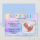 Cette nouvelle invitation de fête "SIP & SEE" pour bébé présente des tons pastel aquarelle bleu, violet, rose et jaune. Vous pouvez également remplacer la photographie des pieds de bébé du modèle par une photo de votre bébé ou la laisser telle quelle. Remplissez les champs de modèle d'informations personnelles, supprimez le texte et/ou cliquez sur personnaliser pour sélectionner une couleur, une taille et un style de police que vous préférez.