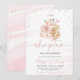 Faire-part de Baby Shower "Nouveau chapitre" avec ruban rose et fleurs sauvages
