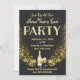 Nouvel An Invitation De Soirée. J'ai conçu cette carte avec un arrière - plan presque complètement noir. La fête s'ajoute avec un élément de fausse parties scintillant, suivi de la parties scintillant dorée, du champagne et des lunettes. Le dos de la carte a aussi une parties scintillant dorée. Élégant, raffiné et minimal. Faisons la fête ! Bonne année. Personnalisable . © Rosemarie Guieb
