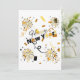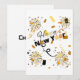 Cette invitation affiche les mots "Bonne Année" dans une police d'impression unique/gras avec des lettres noires et dorées ainsi que des feux d'artifice, des formes et des motifs de confettis dans le thème et le style de cette nouvelle année. Imprimé sur un papier classique de 17,5 pt d'épaisseur avec une finition mate non couchée avec une texture de coquille d'œuf fabriqué et imprimé aux États-Unis avec "À votre santé!" imprimé au dos.