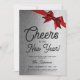 Invitation Nouvel An MODERNE Soirée Fête Silver Glam Red Bow