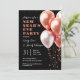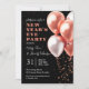 Invitation Nouvel An Rose Gold Confetti Balloons Noir