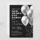 Invitation Nouvel An Silver Confetti Balloons Noir