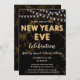 Les invitations de la fête de la veille de l'an comportent des ballons en feuille d'or avec des lampes à cordes sur un arrière - plan moucheté en marbre noir et or. Personnalisez le texte avec votre propre libellé. Visitez notre magasin pour voir d'autres produits correspondants.