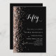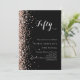 Pour une soirée d'anniversaire élégante de 50ème (ou tout âge). Un arrière - plan noir classique. Décoré de confettis d'or rose. Personnalisez et ajoutez un nom et des détails du parti.