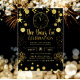 Rejoignez-nous pour une élégante fête du réveillon du Nouvel An ! Parcourez l'année à venir avec notre Black & Gold Parties scintillant Party. Habille pour impressionner et accueillons le Nouvel An avec style!" Vous pouvez personnaliser les textes.