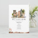 Baby shower garçon avec aquarelle illustration de la rue de la ville avec ballon rose attaché à un lampadaire avec poussette garée sur le trottoir. Le fond est orné d'une bordure en brique au design floral.