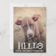 Utilisez ce modèle de photo éditable avec une typographie blanche mignonne avec un overlay HELLO et des empreintes de pattes incorporées dans la lettre/typographie. Ajoutez votre propre photo de nouveau chiot, nouveau chaton ou tout autre nouvel animal à cette carte photo imprimable.