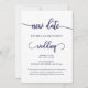 Nouvelle Date Reportée Mariage Marine Blue Script Invitation