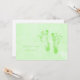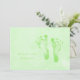 C'est un genre simple et mignon, neutre, invitation de baby shower pour un bébé ou fille avec un ensemble de petites empreintes de pas douces de bébé sur l'avant sur un fond grunge vert en pastel doux.
