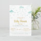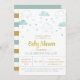 Invitation Nuages et Coeurs Baby shower bleu et or
