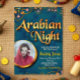 Plongez dans un monde de mystère et soyez enchanté par cette invitation à une Nuit arabe. Cette invitation a été rendue spéciale en utilisant une couleur de fond captivante avec des décorations dorées et diamantées qui complètent l'éclat et l'attrait d'une fête sur le thème arabe.