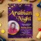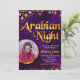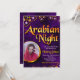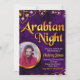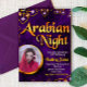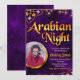 Entrez dans un monde de mystère et soyez enchanté par cette invitation à une soirée Arabian Night. Cette invitation a été rendue spéciale en utilisant une couleur de fond captivante avec des décorations dorées et diamantées pour capturer la vibrance et l'attrait d'une soirée à thème arabe.