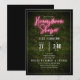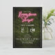 Script de douche de lune de miel inspiré d'un enseigne néon rose sur un fond vert inspiré de buis avec texte blanc personnalisé.