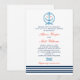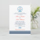 La conception de l'invitation de dîner de répétition de mariage nautique chic comporte un monogramme de mariage affiché à l'intérieur d'une ancre de bateau avec des accents de nœuds de corde et de rayures. Palette de couleurs bleu marine, bleu océan, rouge orange corail et blanc.
