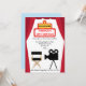 Cette invitation à la fête d'anniversaire de la soirée de cinéma comporte une caméra vidéo et un fauteuil de réalisateur et des champs de texte personnalisables pour vos informations de fête.