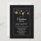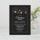 Une nuit d'étoile noire moderne bordait l'invitation à la fête de Noël avec des baubles et des étoiles de Noël colorés. Convient aux événements familiaux ou professionnels.