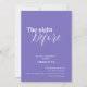 Préparez-vous à une soirée enchanteresse avec notre "Purple Night Before Invitation". Ce design élégant, baigné dans de riches tons de violet, ouvre la voie à un rassemblement avant-mariage mémorable. Avec les détails de l'événement élégamment affichés ci-dessous, y compris les noms de la mariée et du marié, cette invitation invitation vos invités à partager dans l'anticipation joyeuse de votre journée spéciale. Rejoignez-nous pour une nuit remplie d'amour, de rire et de souvenirs chéris.