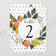 Carte numérique sur le thème des agrumes avec une couronne d'aquarelle avec verdure, oranges et citrons. La carte de numéro de tableau s'imprime à l'avant et à l'arrière (recto double). Les articles sont imprimés exactement comme ils apparaissent sur votre écran lorsque vous ajoutez au panier, donc personnalisez et ajoutez chaque numéro de table dont vous avez besoin à votre panier individuellement.