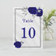 élégant personnalisable numéro de table carte fleurs bleu royal avec quelques feuilles gris argent faux feuille de table géométrique carte numéro