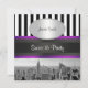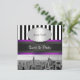 Invitation NYC Skyline BW Blk Wht Strp Purpl P Sweet 16 Party