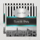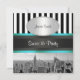 NY City Skyline BW Black & White Stripe Invitation Collection - Sweet sixteen Party Invitation personnalisable Invitations et accessoires avec une vue iconique de l'horizon de New York City du sommet du 30 Rockefeller Center, avec une photo en noir et blanc de l'Empire State Building, Lower Manhattan y compris le World Trade Center. Elles disposent également d'un arrière - plan motif rayé noir et blanc et d'un ruban turquoise / aqua et noir ainsi que d'un étiquette à dégradé blanc avec le choix d'un cadre perle d'apparence argent ou or. (Remarque : certains accessoires de coordination ne peuvent pas avoir les photos ou les éléments de conception supplémentaires mentionnés ci-dessus.) Ce produit fait partie d'une suite de conceptions assorties qui sont facilement personnalisables pour de nombreuses occasions et événements. Si vous avez besoin de cartes RSVP assorties, notes de remerciements, timbres, magnets ou autres accessoires, veuillez consulter nos autres annonces. Si vous ne voyez pas un produit correspondant qui vous intéresse, ou si vous souhaitez voir ce design dans des couleurs différentes, avec des éléments d'autres designs, ou avec différentes photos NYCisMyMuse que vous voyez dans notre magasin, veuillez nous contacter et nous serons heureux de customiser un design pour vous! Veuillez noter qu'il s'agit d'un design graphique et qu'il ne contient aucun tissu, métal, gemme ou gaufrage. 2012 ©NYCisMyMuse Tous droits réservés