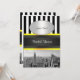 Invitation NYC Skyline BW Blk Wht Strp Yellow P Fête des mari