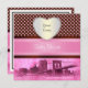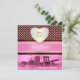 Ensemble Invitation pour Baby Shower NYC Skyline Pont de Brooklyn, Bateau, Points Rose sur Fond Brun