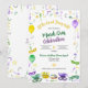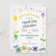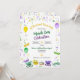 Réunissez-vous pour une joyeuse célébration de Mardi Gras. Des perles, rubans et fleur-de-lys or, vert et violet dans un effet aquarelle sont dispersés sur l'invitation. Des masques de Mardi Gras, une galette des rois et une couronne sont représentés en bas de l'invitation. Le verso reprend l'imagerie des perles. Parfait pour une célébration de Mardi Gras ou de mardi gras, une douche de mariée sur le thème de Mardi Gras, une fête de bachelorette à La Nouvelle-Orléans ou un anniversaire. Disponible avec des produits assortis.