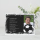 Ce faire-part d'obtention du diplôme a une conception géniale moderne ! L'arrière - plan est noir avec un cadre grunge blanc et un graphique noir et blanc d'un ballon de football. Derrière le ballon de football est un coupe-circuit pour encadrer votre photo et vers la gauche est un secteur pour votre texte fait sur commande. Très cool et une grande manière de célébrer votre étoile du football !