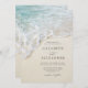 Cet élégant classique unique invitation de mariage de plage d'été comprend une photo de près d'un rivage de plage avec une vague d'océan et de la mer, et élégante typographie classique, parfait pour les mariages de destination.