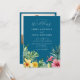 Cet élégant faire-part de mariage de fleurs tropicales bleu océanique peut être personnalisé avec vos informations dans la typographie moderne avec votre site mariage code QR au verso à côté d'une photo spéciale. Conçu par Thisisnotme©