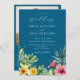Invitation Ocean Blue Tropical Flowers Photo QR Code Mariage