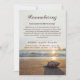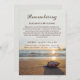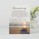 Invitation à célébrer et à honorer la mémoire de votre être cher, sur le thème de la plage. Le souvenir est écrit à travers l'invitation sur le thème de l'océan dans un script élégant. Ajoutez le libellé de l'invitation, le nom de votre bien-aimé, et les détails de la célébration dans d'élégantes polices marron contre une photo d'un conque allongé sur une plage.