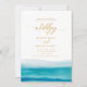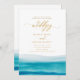 Ocean Watercolor Gold Script Plage Mariage Invitation